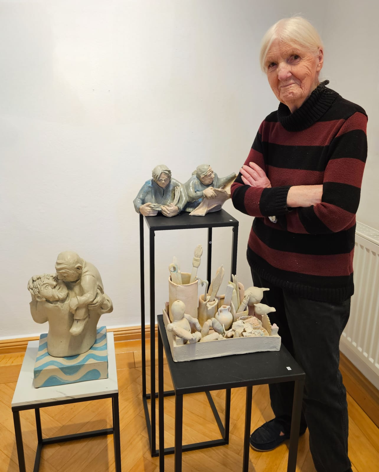 Höhepunkte in all den Jahren waren zweifellos meine Kunstausstellungen. Ohne die tatkräftige Unterstützung meines Mannes wären sie nie zustande gekommen. Er war nicht nur beim Schreinern und Lackieren der Podeste eine große Hilfe, sondern steht mir auch bis heute beim Aufbau, Glätten und Brennen der Keramikplastiken zur Seite. Seine Erfindung von Glasuren und Experimente mit Erden, Sand und Asche aus unserer Region haben die Kunstwerke maßgeblich geprägt und vervollständigt.